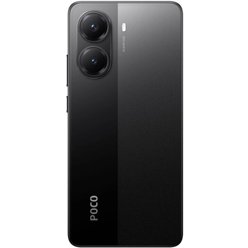 Задняя панель традиционно для POCO зонирована разной финишной обработкой областей её поверхности. Левая часть панели, на которой размещена камера с вертикальным расположением объективов, обладает слегка шероховатой однородной текстурой. Текстура правой части более выражена и уникальна в каждом из цветовых вариантов. Боковая грань плоская.