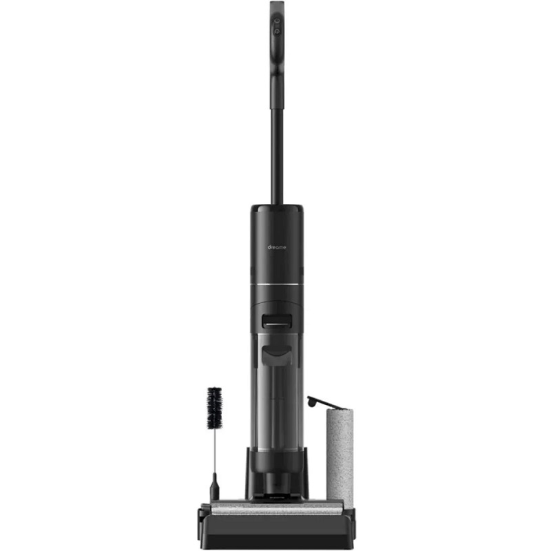 Специальный встроенный скребок вычесывает волосы и счищает грязь с щетки после уборки. Чтобы тщательно промыть валик чистой водой, достаточно просто поставить пылесос на базу и нажать соответствующую кнопку.