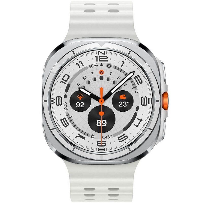 Samsung Galaxy Watch Ultra 2025 представлены в корпусе из титана, что обеспечивает высокую прочность и стильный вид. Размеры 47.1 х 47.4 х 12.1 мм и вес 70 г делают их удобными для ежедневного ношения. Защитное стекло устойчиво к царапинам и ударам — при активном использовании дисплей будет сохраняться в первоначальном состоянии.