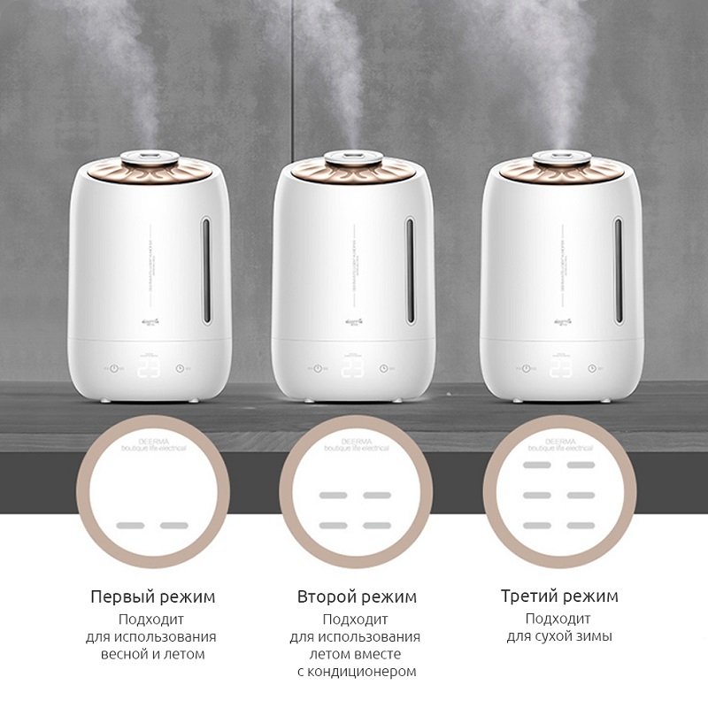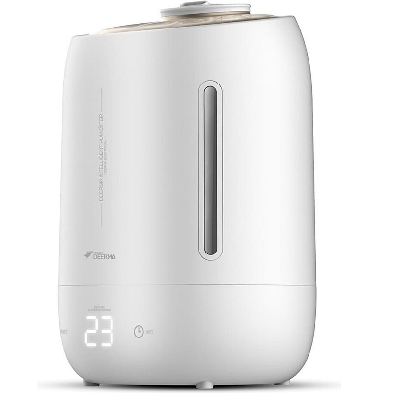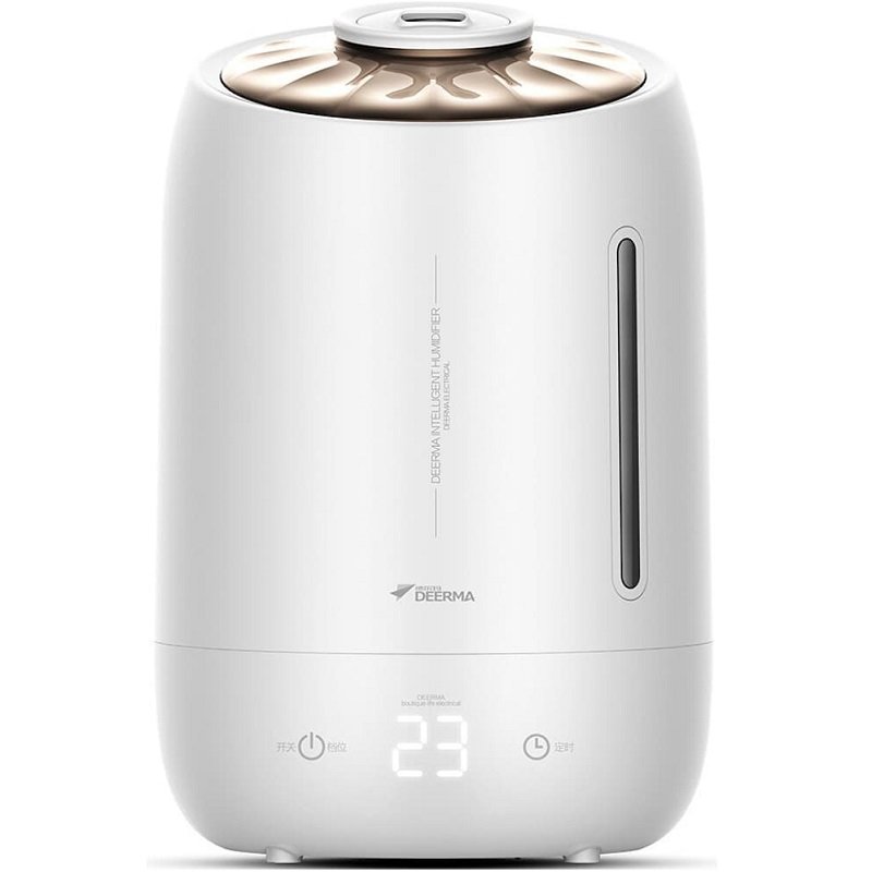 DEERMA DEM-F600 - изготовлен из практичного ABS-пластика, имеет цилиндрическую форму, симпатичный дизайн, компактные габариты (208 × 208 × 315 мм) и 5 литровую емкость для воды. Кроме того, устройство имеет специальную прорезь для проверки остатка жидкости. Увлажнитель воздуха оснащен углеродным фильтром и дозатором. Интенсивность распыления можно регулировать с помощью сенсорного элемента управления. Максимальная пропускная способность устройства составляет порядка 300 ± 10 мл/ч. В процессе работы увлажнителя, мелкие частички воды распыляются в виде дымки, создавая благоприятную атмосферу для пребывания в комнате площадью 31-40 м². Увлажнитель DEM-F600 потребляет всего около 25 Вт электроэнергии в час и очень тихо работает, чтобы не помешать вашему отдыху. Среди прочих особенностей этой модели увлажнителя воздуха стоит отметить: наличие датчика температуры и гнезда для установки капсулы с ионами серебра (приобретается отдельно), которые дезинфицируют воду перед ее распылением в воздух.